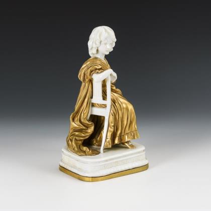 Auf einem Stuhl sitzendes Mädchen im faltenreichen Gewand