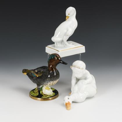 2x Hutschenreuther: farbige Ente und Kind mit Ente. / 1x Fraureuth: Entenküken