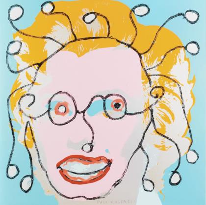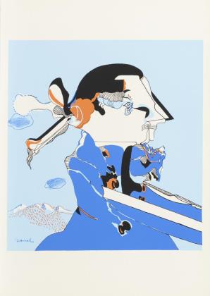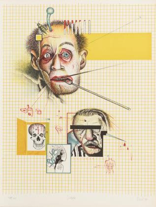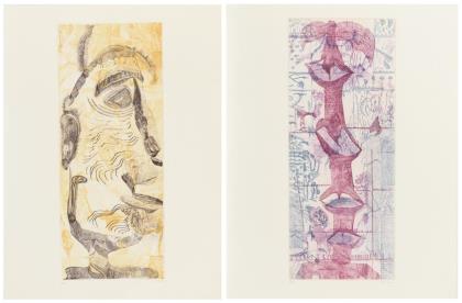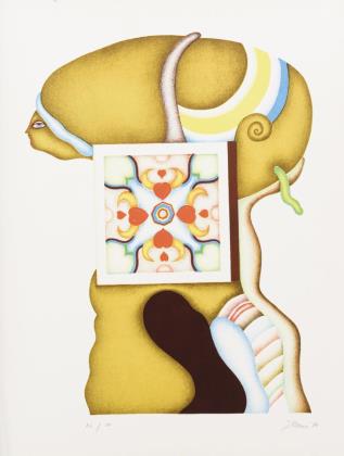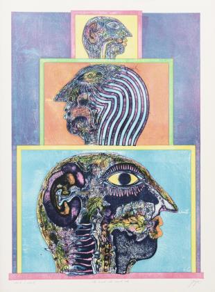 Gelber Kopf mit Wurm, Blatt: 65,5 x 50,5 cm, Exemplar: 82/100, 819]71, am linken Rand mit Knicken | Grauer Kopf mit Schwimmreifen, Blatt: 66 x 50,5 cm, Exemplar: 28/100, [19]73, etwas stockfleckig | Violetter Doppelkopf, Blatt: 61 x 43 cm, Exemplar: 100/100, [19]70 | Grauer Kopf mit Box, Blatt: 66 x 50 cm, Exemplar: 36/100, [19]73, etwas stockfleckig