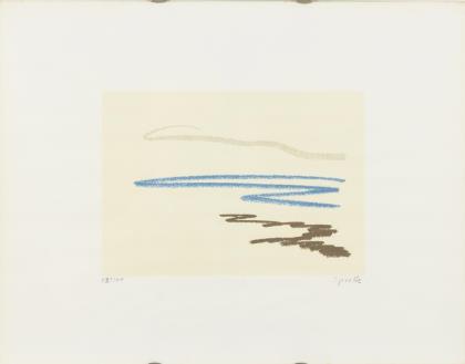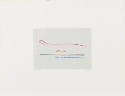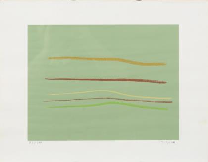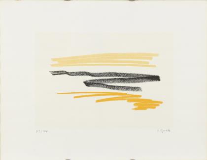 Mann, Natascha: Ohne Titel, Farblithografie, Platte: 48 x 36,5 cm, Blatt: 59,5 x 42 cm, Künstlerexemplar "E.A.", [19]81 | Korab, Karl: Ohne Titel, Farblithografie, Platte: 15 x 60 cm, Blatt: 40 x 65 cm, Exemplar: XXVIII/LXX, [19]69, Bugfalte