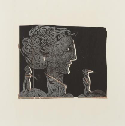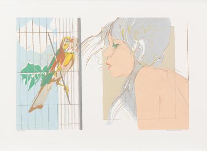 Frau und Vogel im Käfig, Blatt: 49 x 68,5 cm, Exemplar: 75/100 | Damenkopf im Profil, Blatt: 70,5 x 50 cm, Exemplar: X/XX, minimaler Defekt am oberen Rand | Damenkopf im Profil, Blatt: 70 x 50,5 cm, Exemplar: 53/60, [19]75 | Frau und Blume, Blatt: 50 x 70 cm, Exemplar: 70/80
