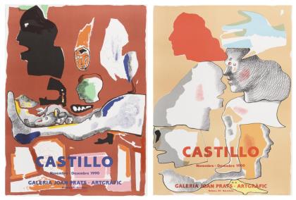 2 Ausstellungsplakate mit surrealistischen Wesen zu "Castillo. Novembre - Desembre 1990. Galeria Joan Prats. Artgrafic"