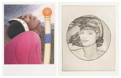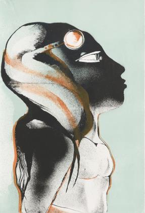 Damenkopf im Tondo, Radierung, Platte: 50 x 40 cm, Blatt: 76 x 54 cm | Porträt einer Afrikanerin im Profil, Farboffsetdruck, Platte: 60 x 50 cm, Blatt: 75,5 x 55 cm
