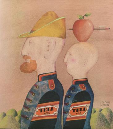 "Tell", 47 x 41 cm, Apfelschuss-Szene des Wilhelm Tell