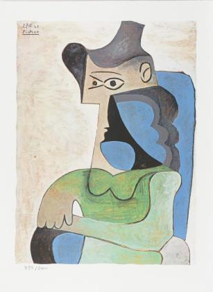 "Sitzende Frau mit Hut", Blatt: 77 x 57,5 cm, Exemplar: 794/2000, nach dem Gemälde aus dem Jahr 1961 | "Krieger Strymon", Blatt: 35 x 24,5 cm, im Passepartout: 50,5 x 40 cm, Illustration aus einer Publikation | "Femme d'Espagne", Blatt: 67 x 50,5 cm