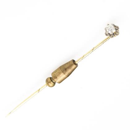 In Blütenchaton gefasster Brillant an langer Nadel