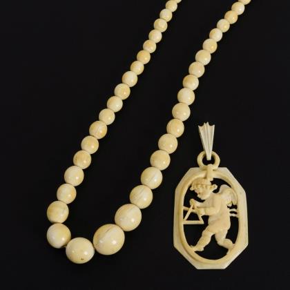 Halskette und Anhänger Elfenbein 1930er Jahre