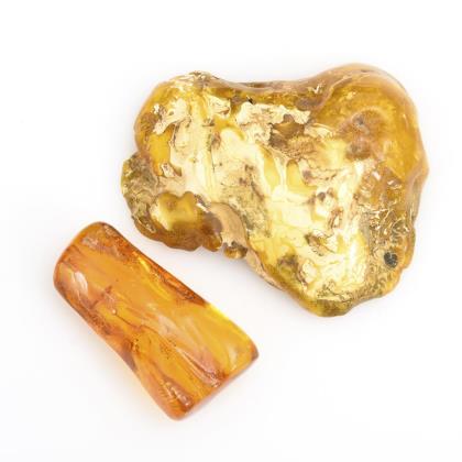 Wolkig hellgelbe und klar gelbe, unbearbeitete Bernsteinstücke
