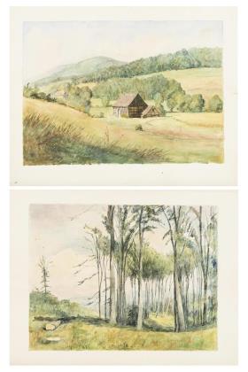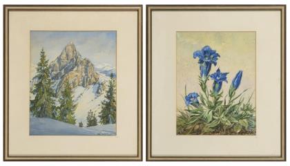 Gebirge und Blumenstudie