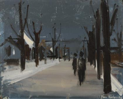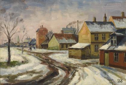 Undeutlich signiert: Straße im Schnee