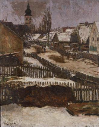 Schneeschmelze vor dem Dorfe