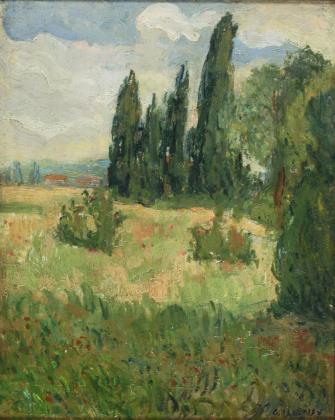 Postimpressionistische Sommerlandschaft mit Zypressen