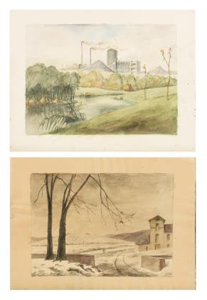 Undeutlich signiert: Industrielandschaft