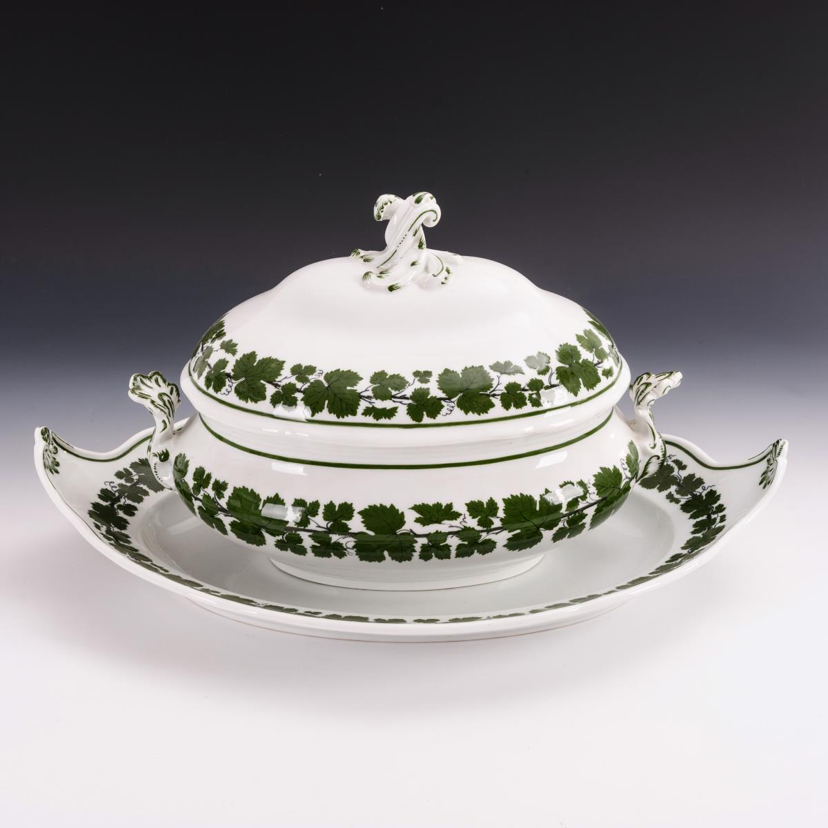 Unterglasurgrüne Weinlaubmalerei.