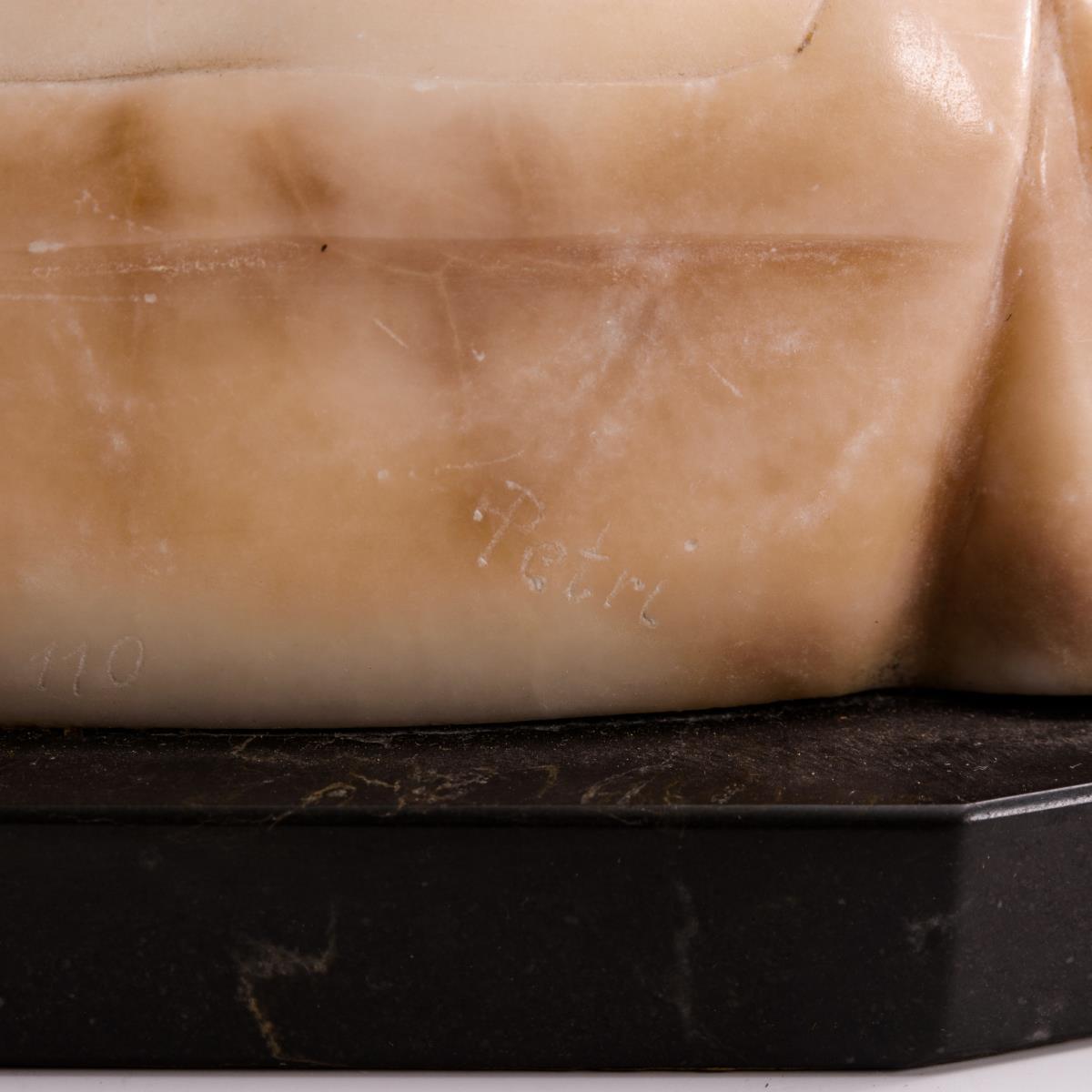 Alabaster teils gefärbt, schwarze Marmor-Plinthe.