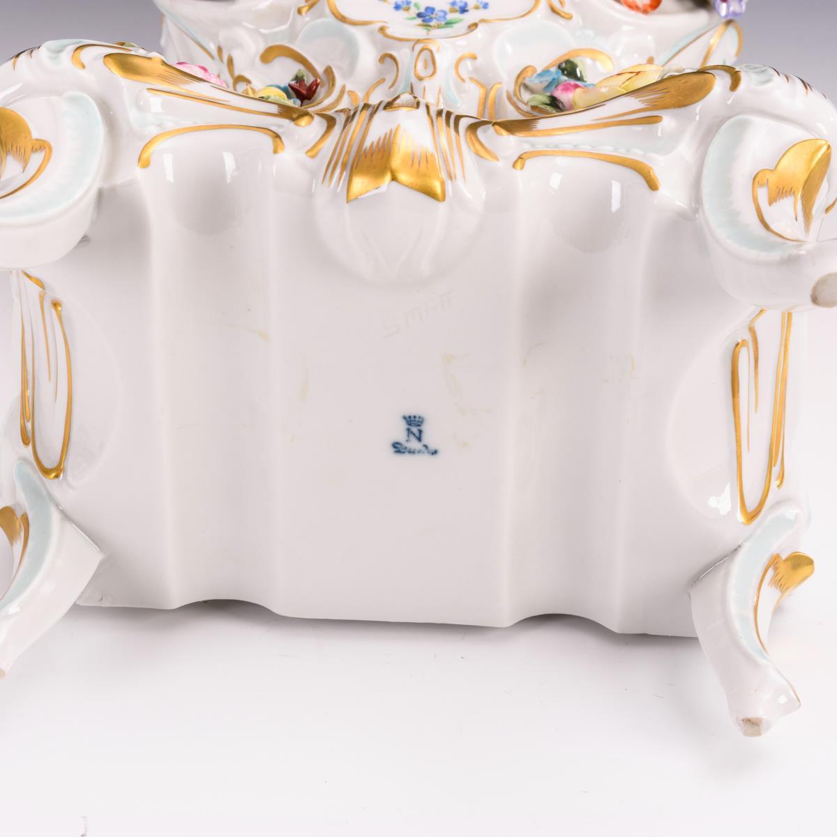 Blumendekor, polychrome Bemalung, Goldstaffage.