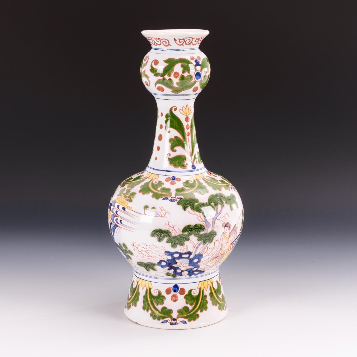 Fayence-Kürbisvase mit Chinoiserien.