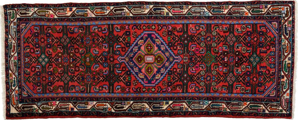 Wolle, handgeknüpft. Polychromdekor.82 x 193 cm.