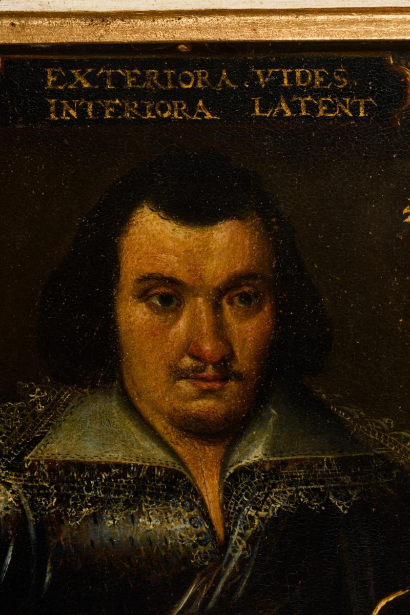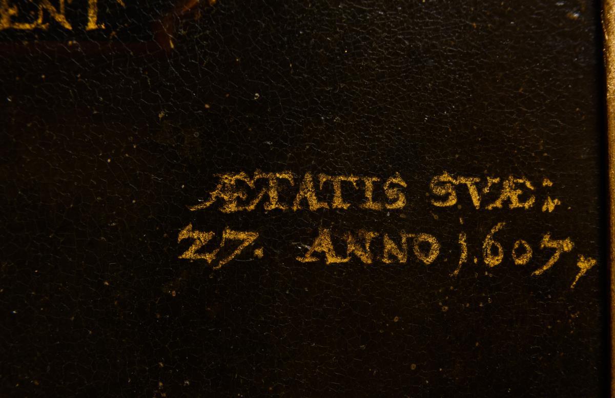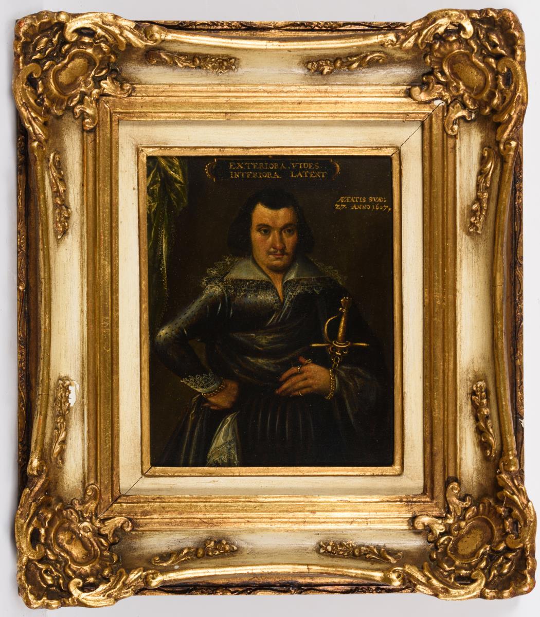 Unsigniert, oben und rechts Schriftzug "Exteriora Vides Interiora Latent Aetatis Suae: 27".
