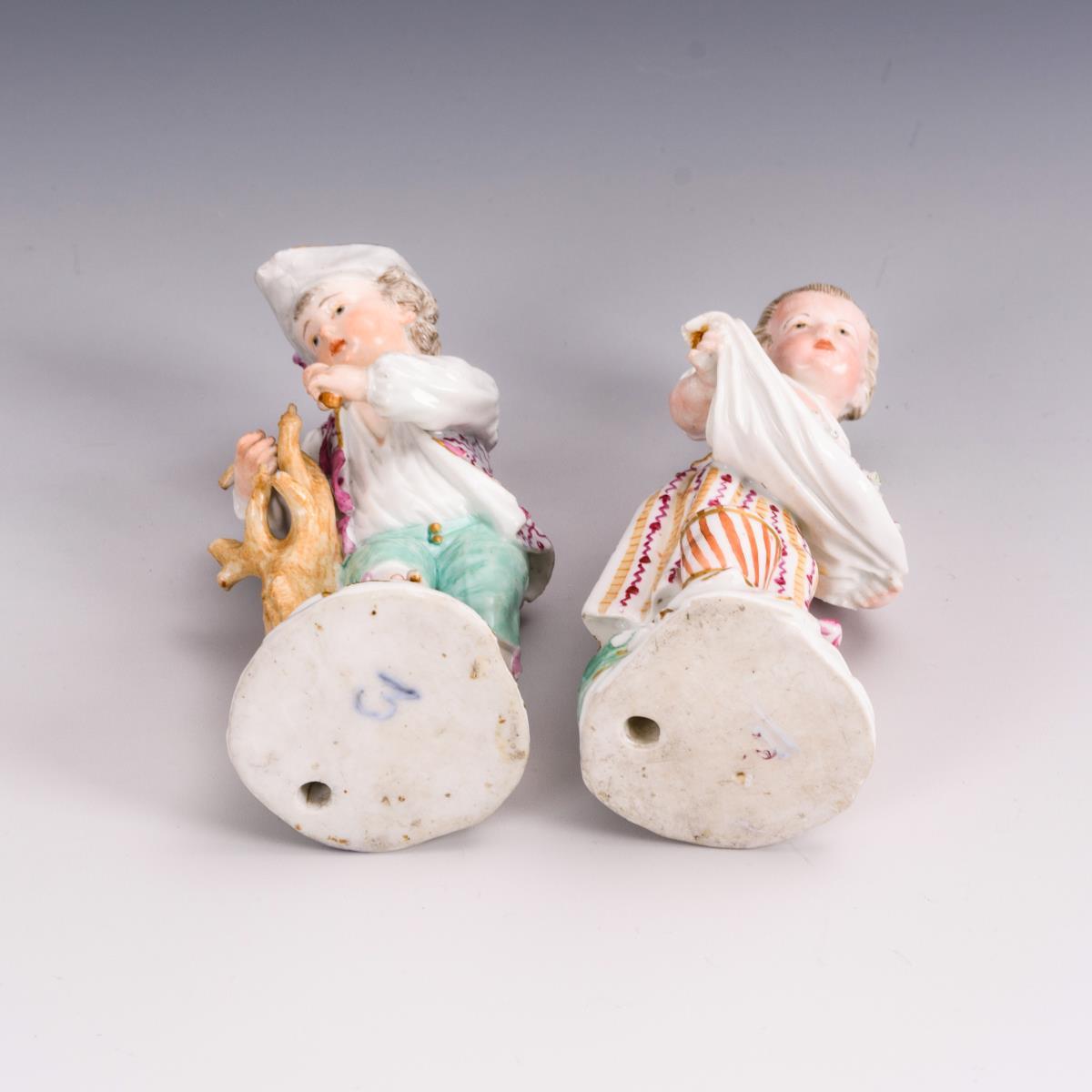 Schwertermarke am Sockel (1x mit Punkt), 2. H. 18. Jh., 1x unterseitig auf unglasiertem Sockel in Unterglasurblau "II" und 1x "3".
