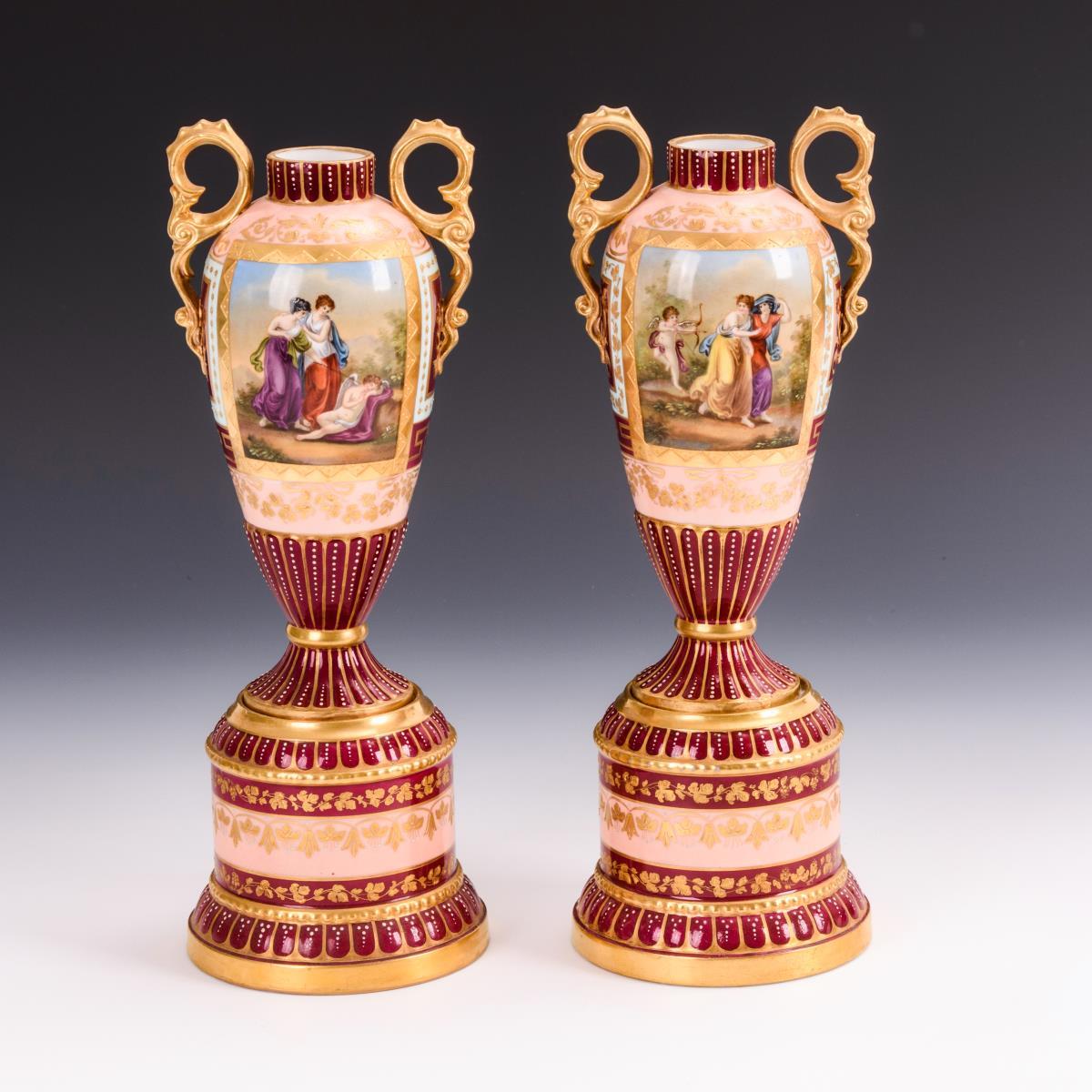 2 Amphorenvasen im Wiener Stil.