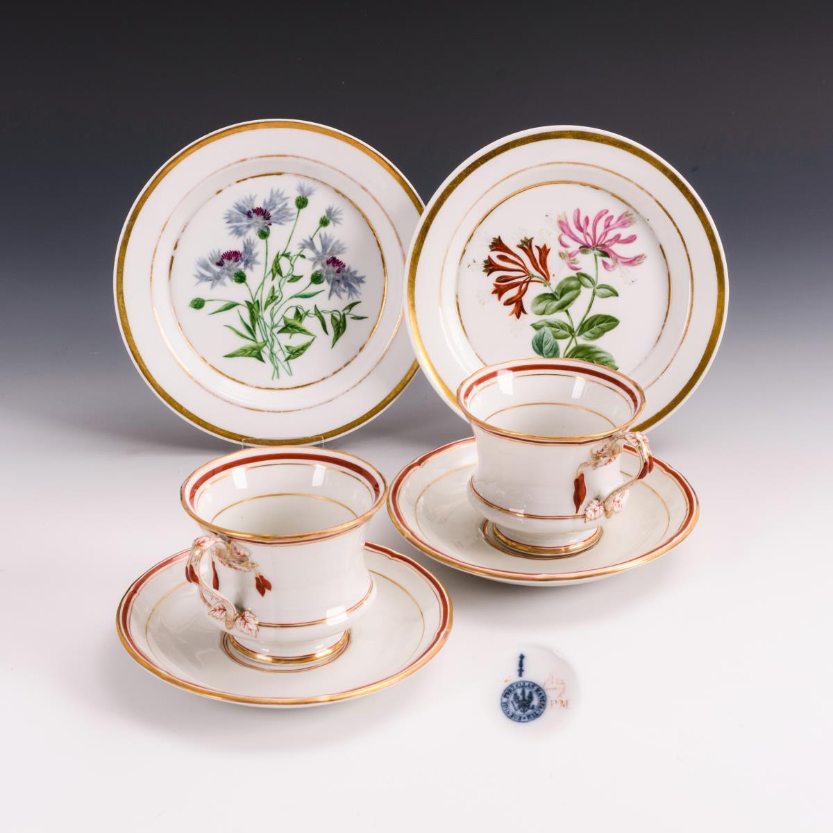 2 Tassen mit Untertassen und 2 Teller.