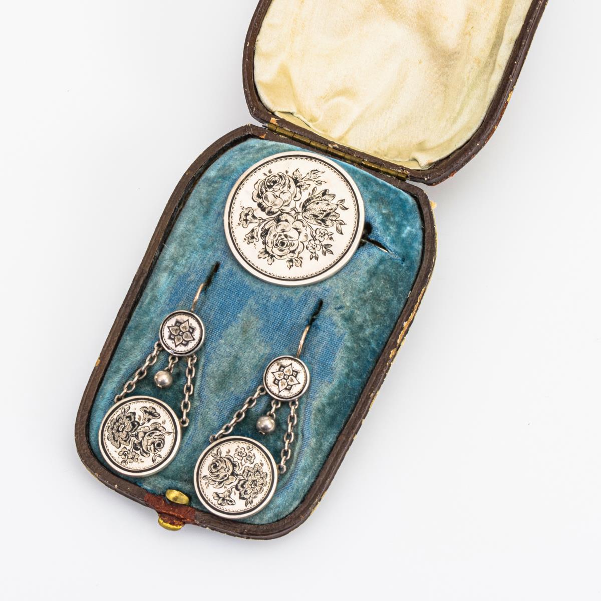 Brosche Ø 3,5 cm. Ohrhänger 5 x 2 cm.