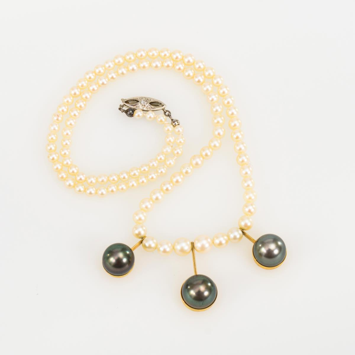 Zuchtperlenkette mit 3 Tahiti-Zuchtperlen.