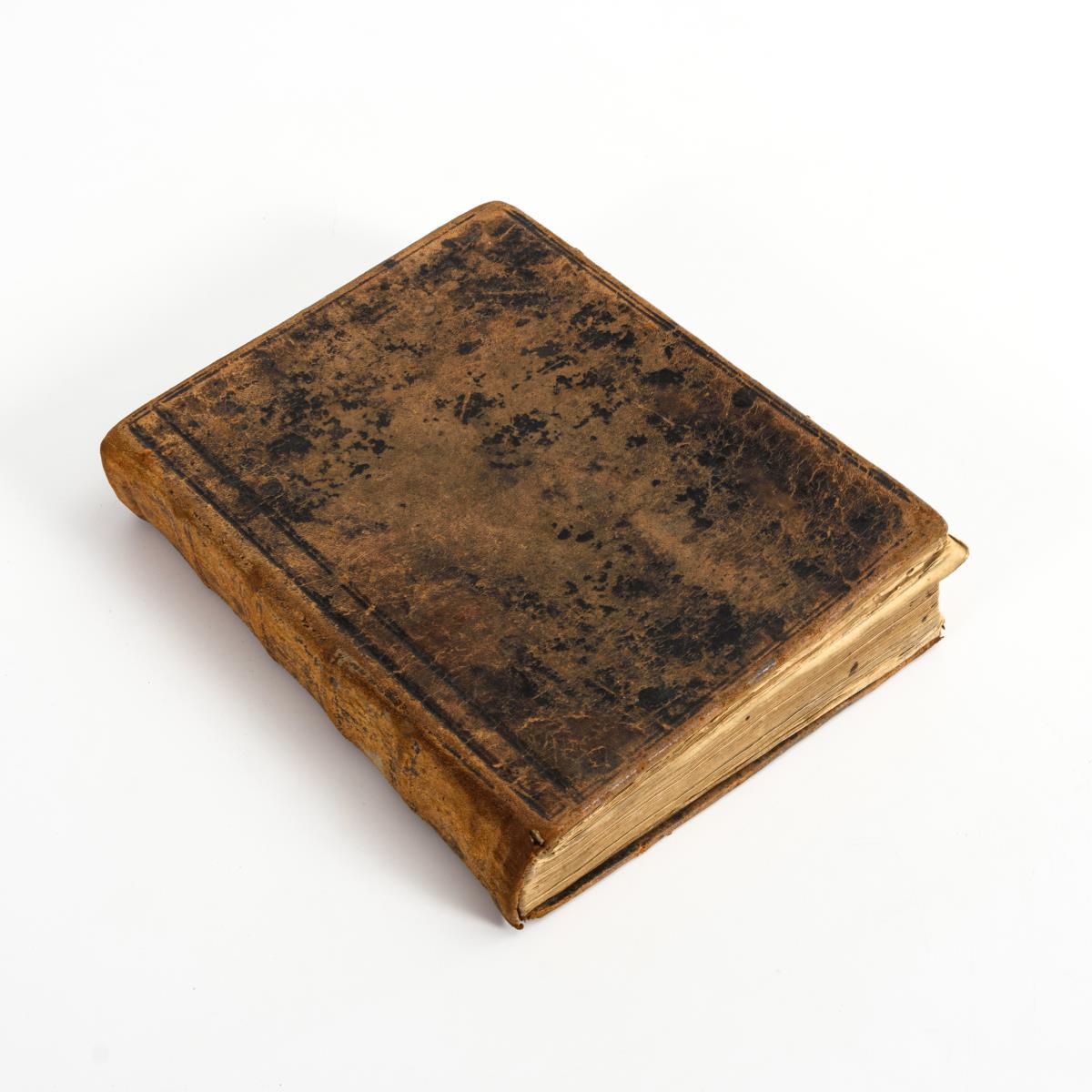 Titel, 374, 8 Seiten. Eingeheftete 8 Seiten handschriftliches "Taufformular" sowie am Ende 45 handschriftliche Seiten wohl historischen Inhaltes. Ledereinband. Stärkere Gebrauchsspuren, Bünde locker.