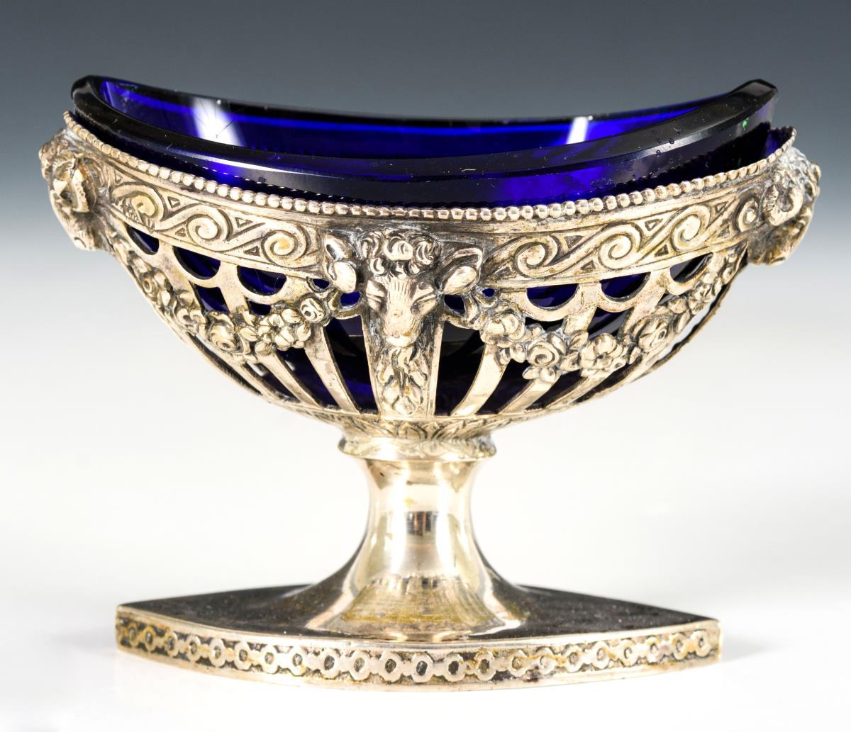Empire-Gewürzschälchen mit Kobalteinsatz.