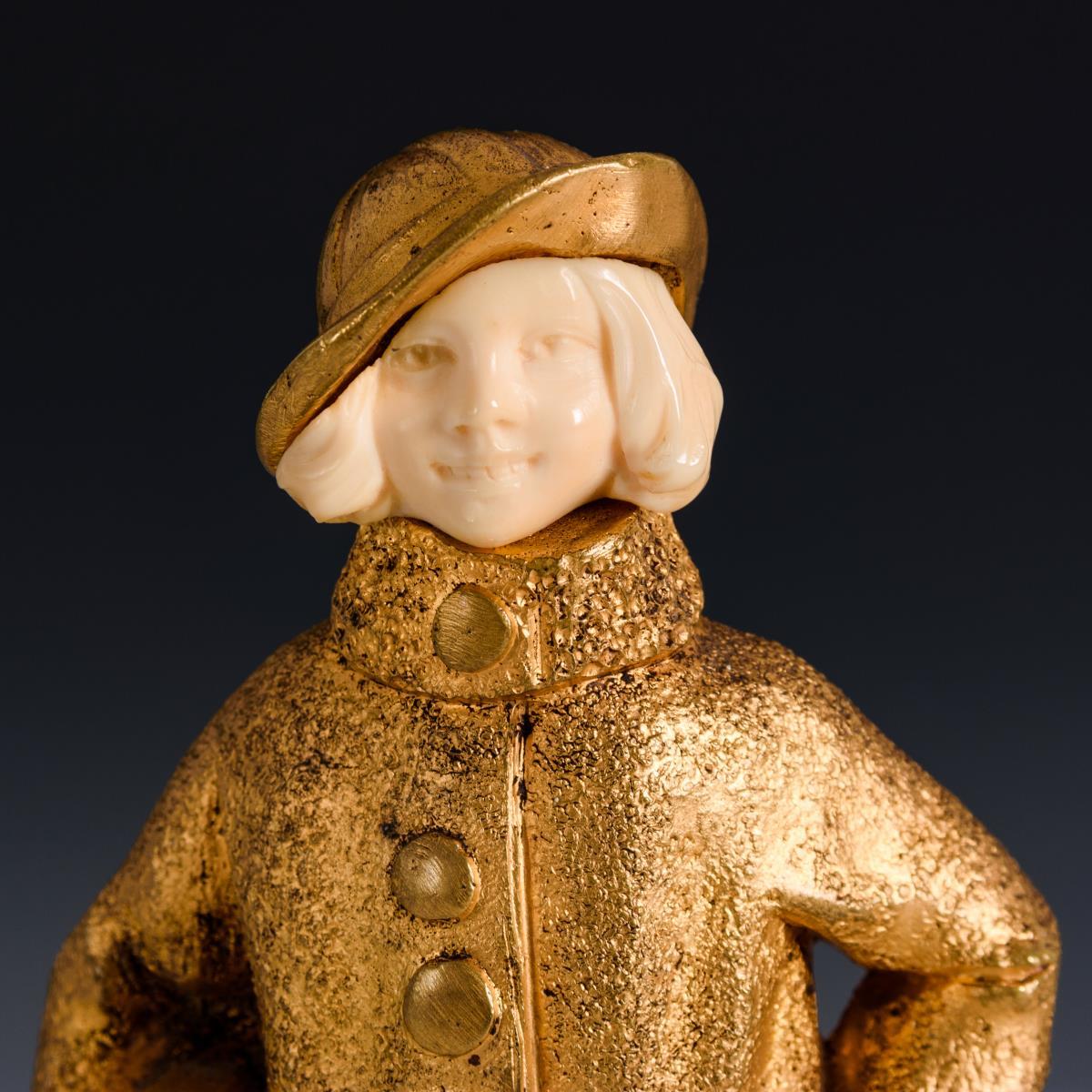 Bronze mit goldfarbenem Überzug, Elfenbein, weiße Marmor-Plinthe.