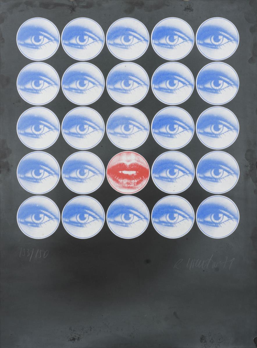 Undeutlich signiert: Blaue Augen, roter Mund