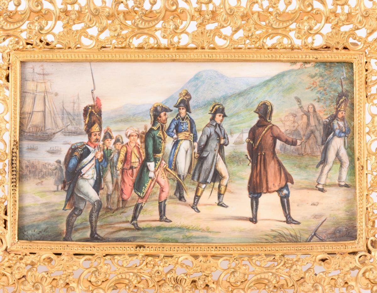Visitenkartentablett mit Miniatur: "Die Landung zu Frejus".