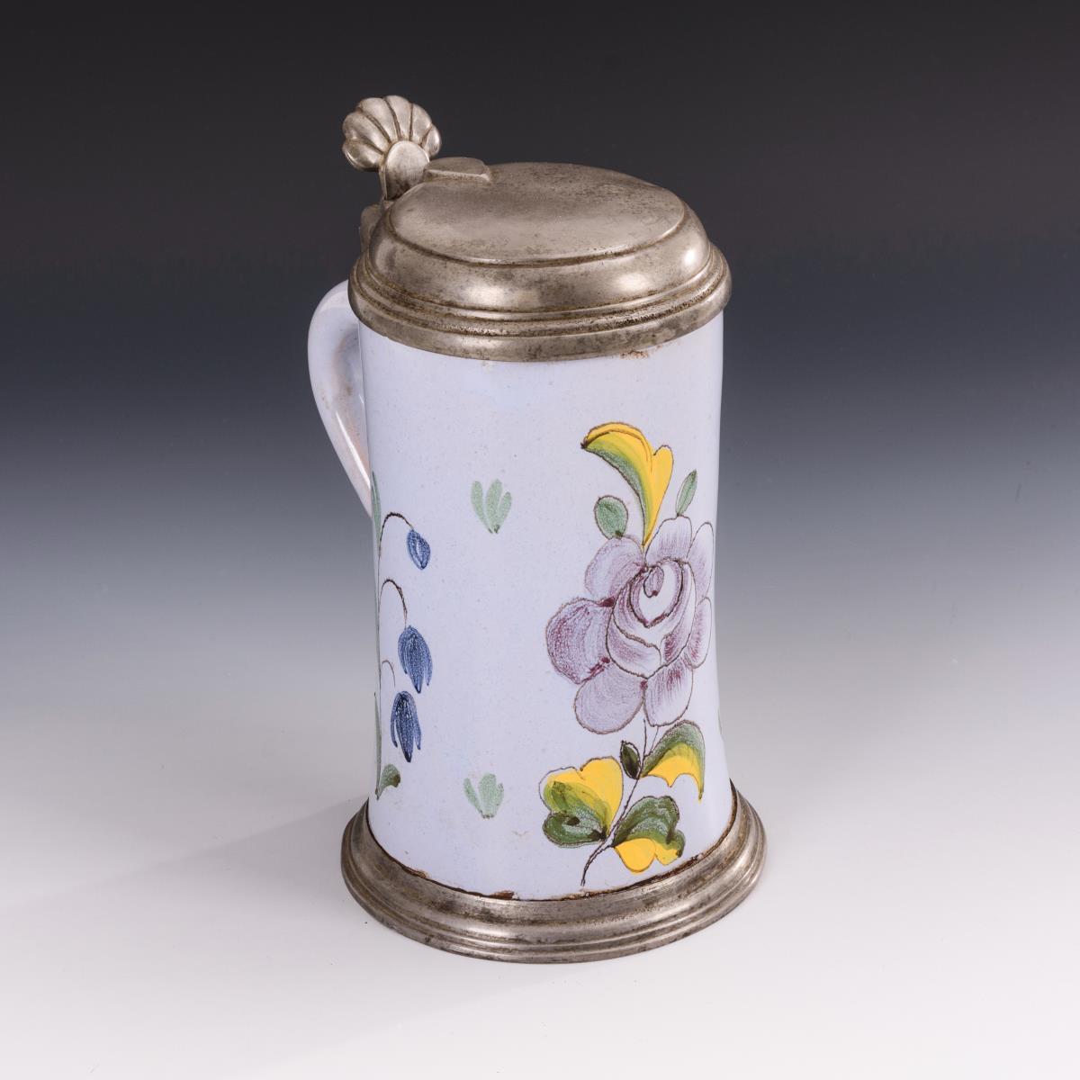Fayence-Walzenkrug mit Rose.