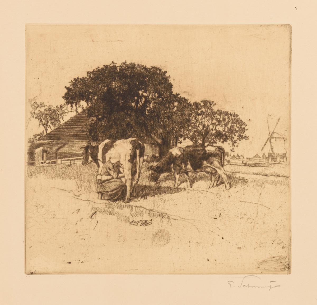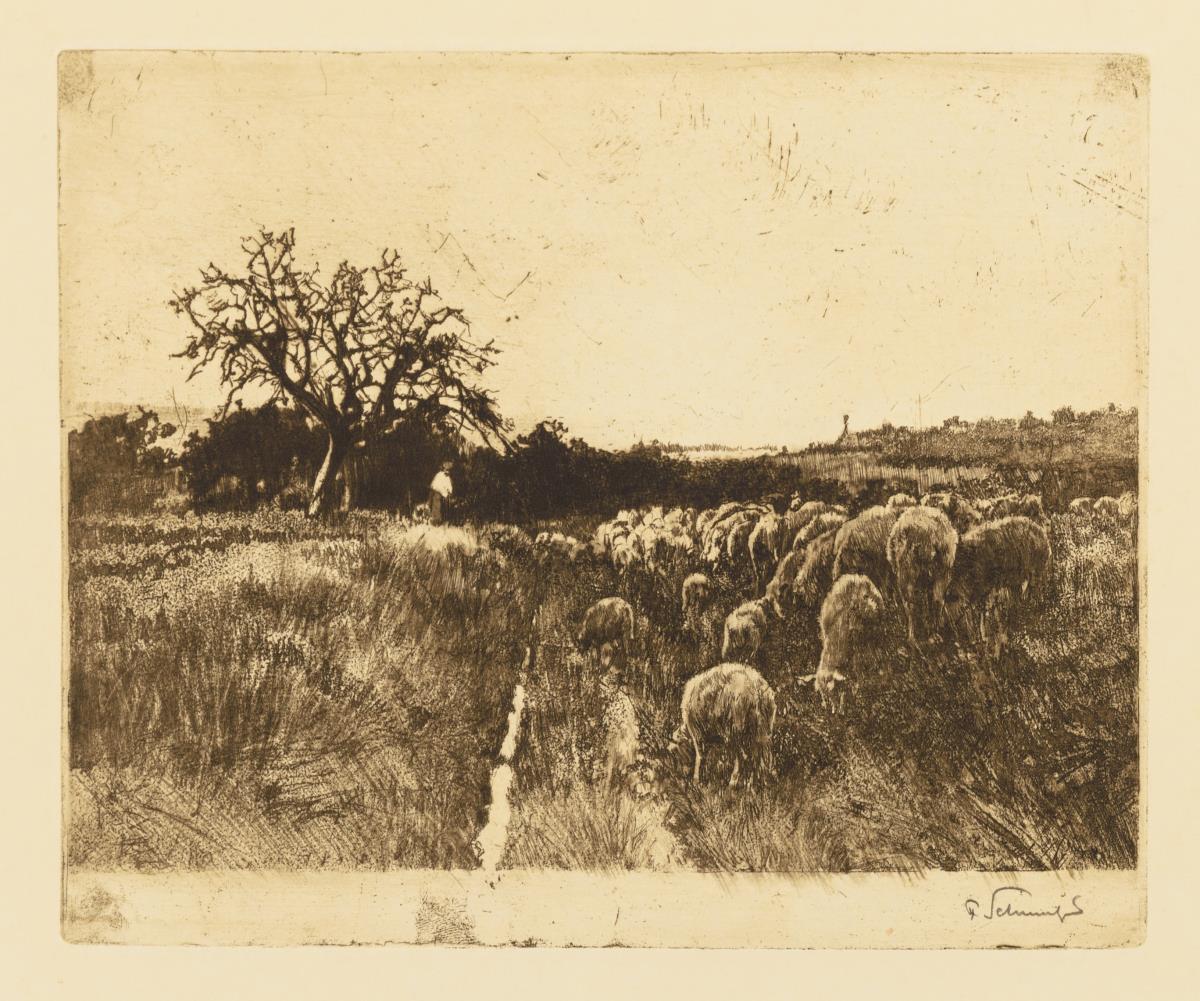 Schafherde Platte: 19 x 23 cm, Blatt: 28 x 35 cm | Kühe Platte: 16 x 17 cm, Blatt: 30 x 29 cm.