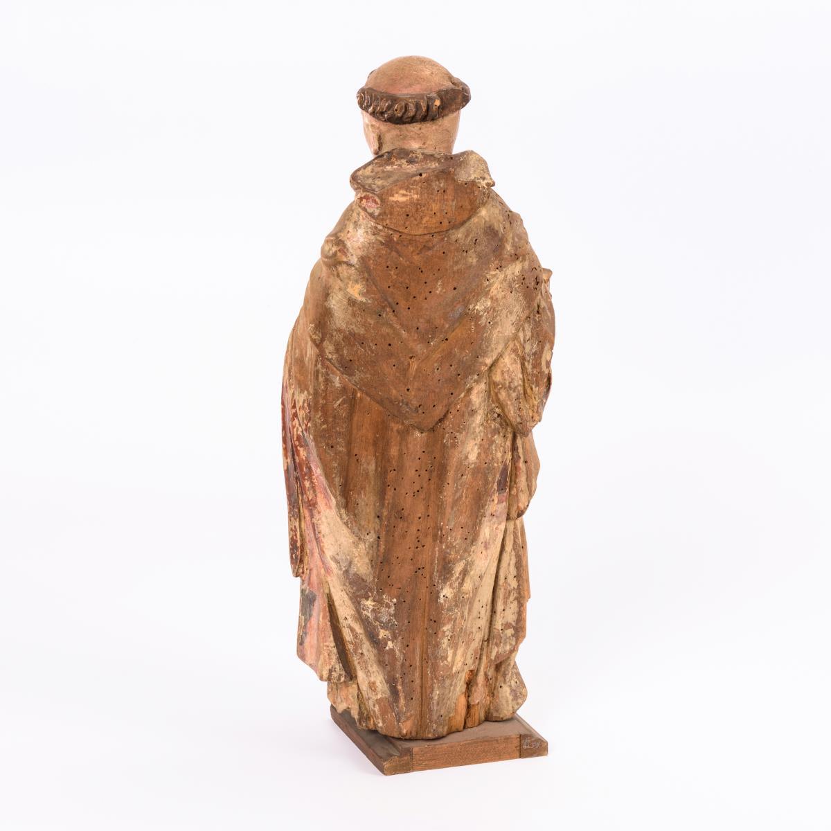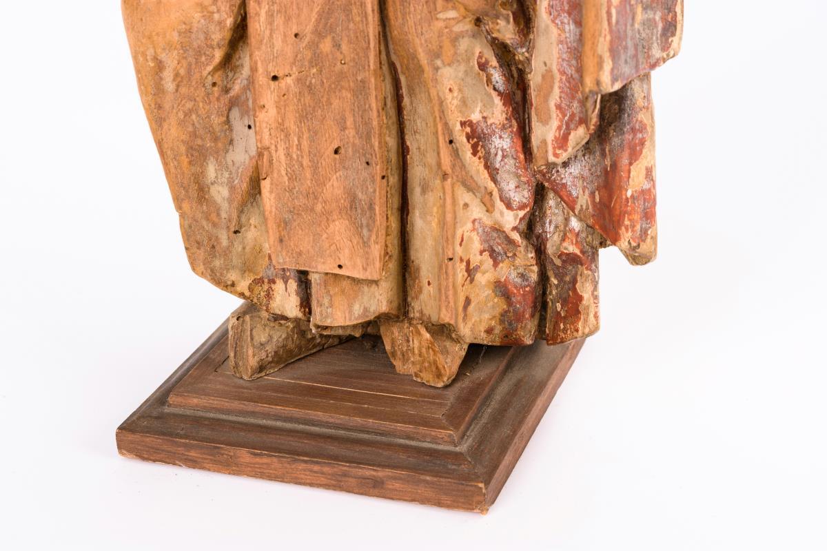 Fehlteile, Anobienspuren, Fassung teils übergangen, Plinthe ergänzt.