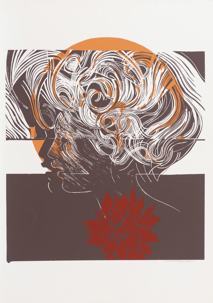 Frau und Vogel im Käfig, Blatt: 49 x 68,5 cm, Exemplar: 75/100 | Damenkopf im Profil, Blatt: 70,5 x 50 cm, Exemplar: X/XX, minimaler Defekt am oberen Rand | Damenkopf im Profil, Blatt: 70 x 50,5 cm, Exemplar: 53/60, [19]75 | Frau und Blume, Blatt: 50 x 70 cm, Exemplar: 70/80.