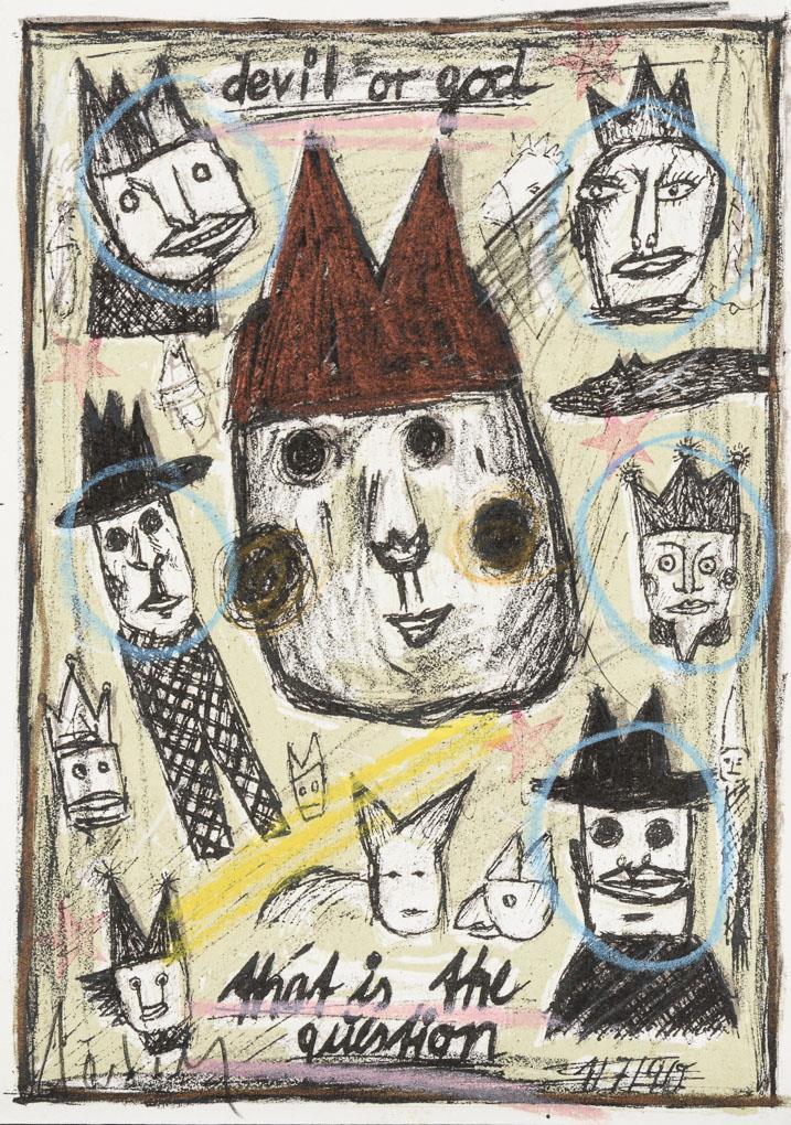 "Devil or Good - That is the Question", Farblithografie, Blatt: 20,5 x 15 cm, Bleistiftsignatur, [1970] | "Anonymous", Lithografie, Blatt: 15 x 10,5 cm, Bleistiftsignatur.