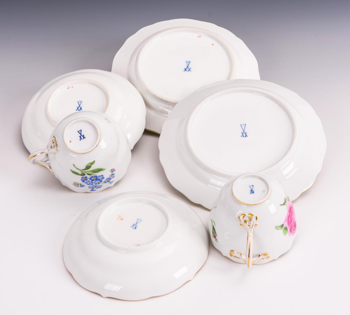 2 Gedecke mit Blumenmalerei.
