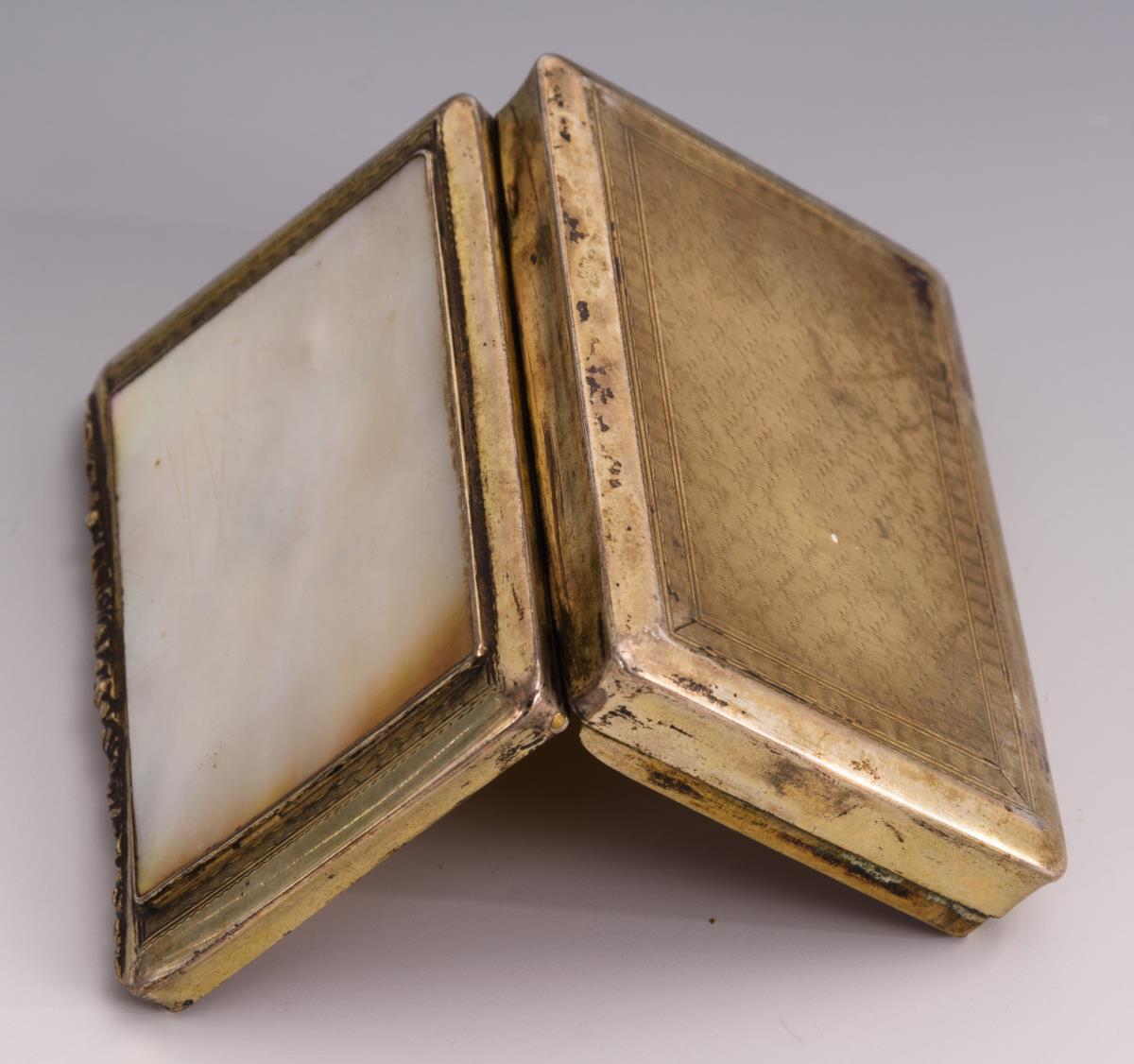Silberdose mit Perlmutt-Deckel.