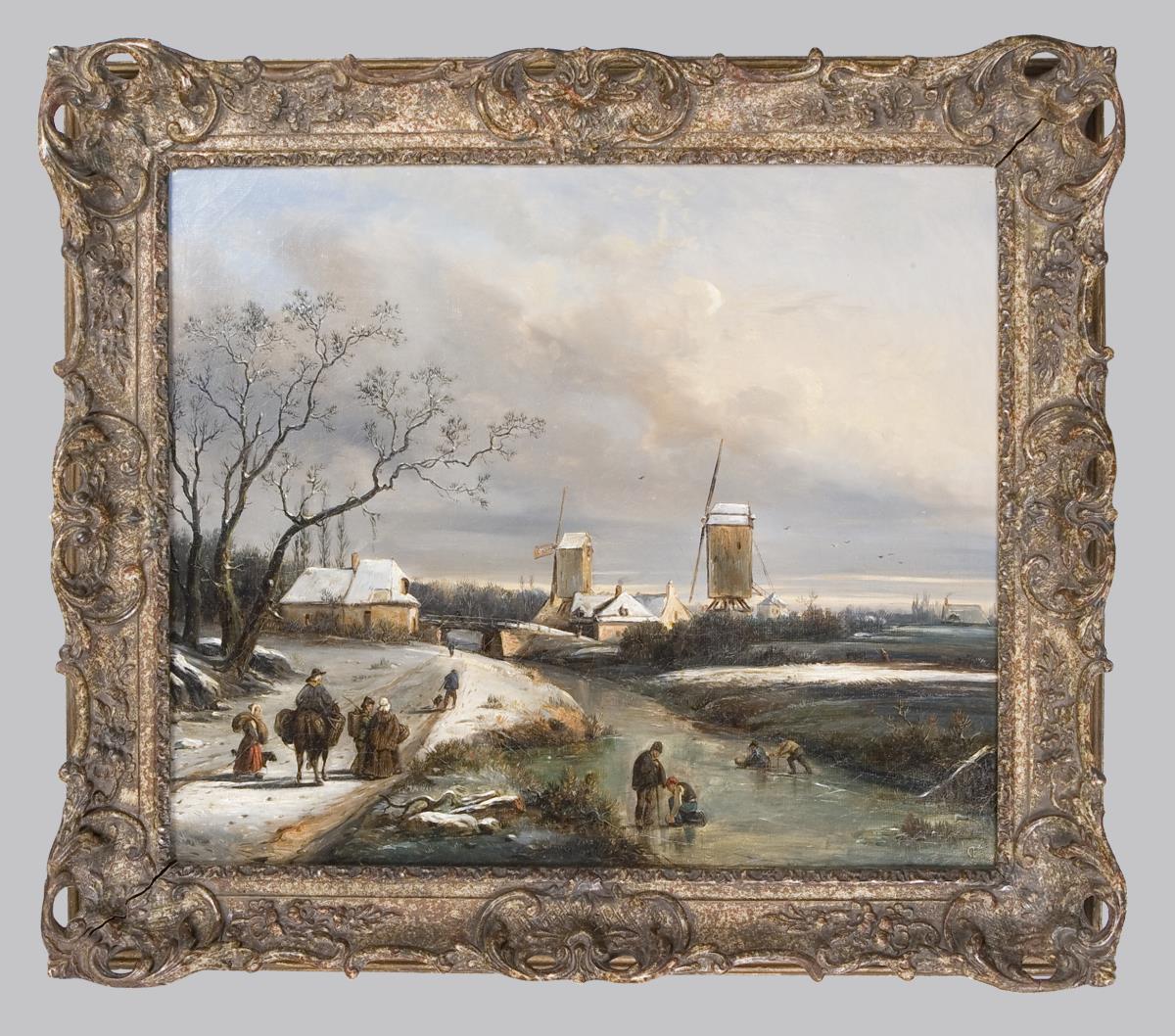 Im Stil der klassischen niederländischen Malerei von Winterfreuden. In Holland mit seinen unzähligen Seen und Kanälen tummelte sich, solange das Eis hielt, Jung und Alt auf den zugefrorenen Eisflächen. * Partnerauktion Bergmann.