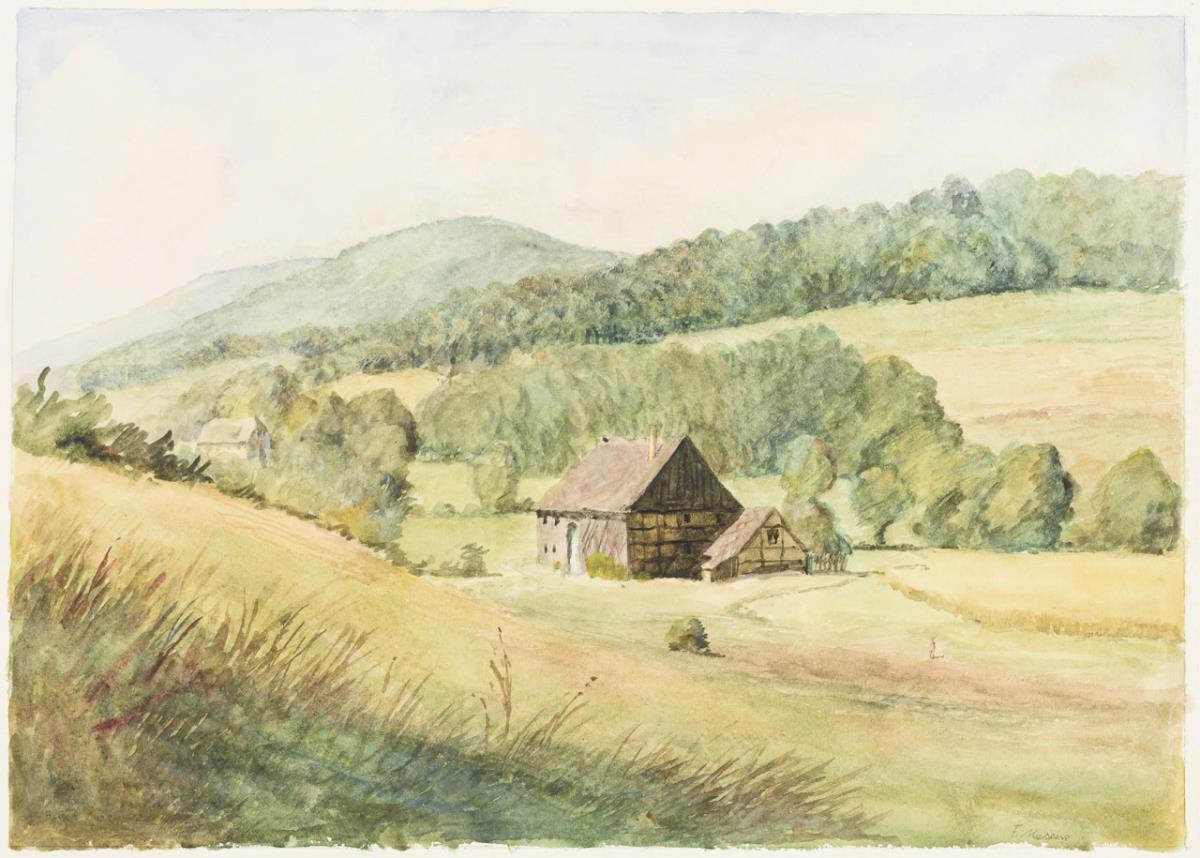 Zwei Werke: "Landschaft mit Scheune" und "Solling"