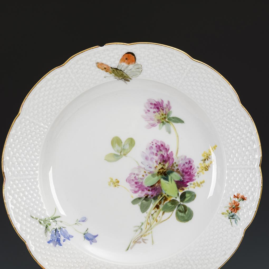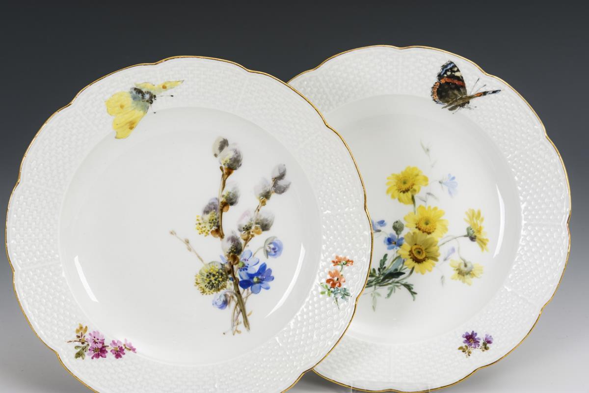 18 Teile. Form "Altozier". Malerei von Julius Eduard Braunsdorf (1841-1922). Bestoßung am Rand eines Kuchentellers, 2 Tassen geklebt und restauriert.