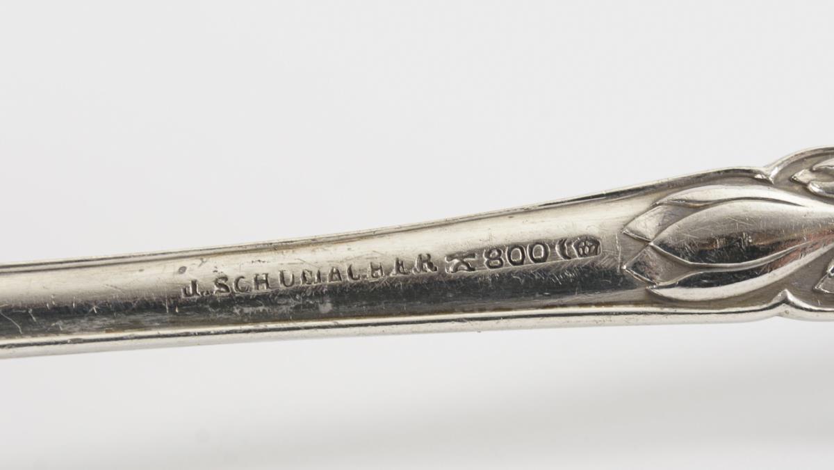 Firmenzeichen/800/Halbmond/Krone gepunzt, mit Juwelierstempel J. Schumacher. Um 1902.