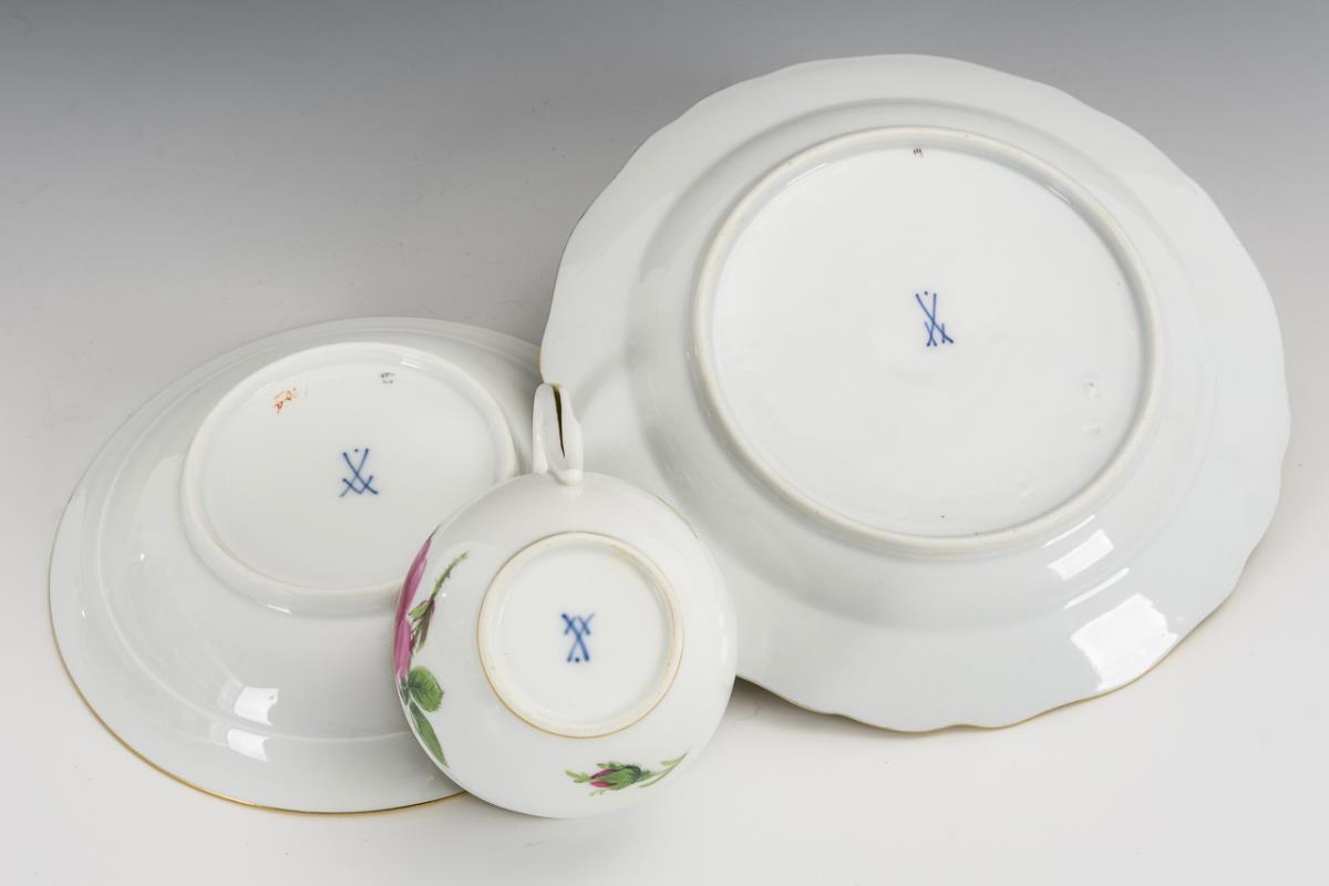 Tasse, Untertasse und Teller "Rote Rose". Meissen.