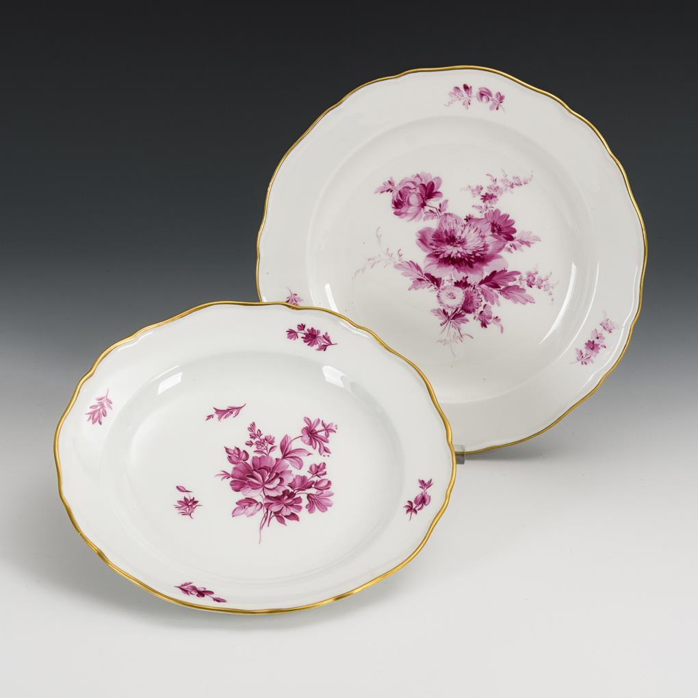 Purpurfarbene Blumenmalerei, Goldstaffage. Ø 20,5 cm.