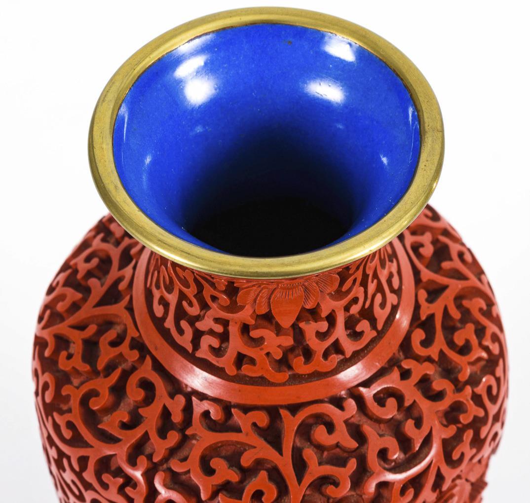 Zwei Bildkartuschen mit je einem Drachen. Vase innen blau emailliert.
