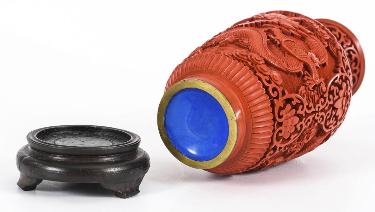 You are here: Home Categories Non-European Art Rotlackvase auf Holzsockel