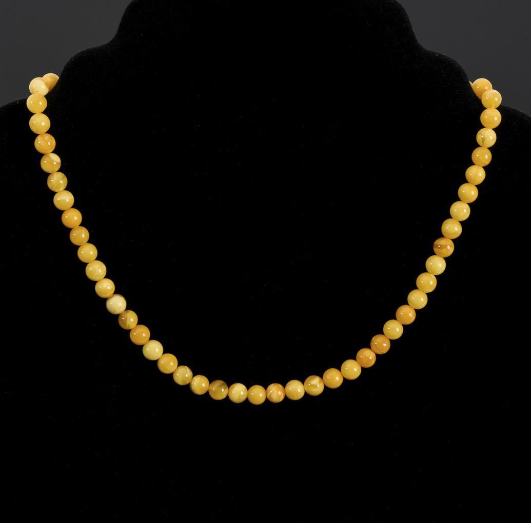 Schnürkette mit Bernsteinkugeln, an Schraubverschluss.