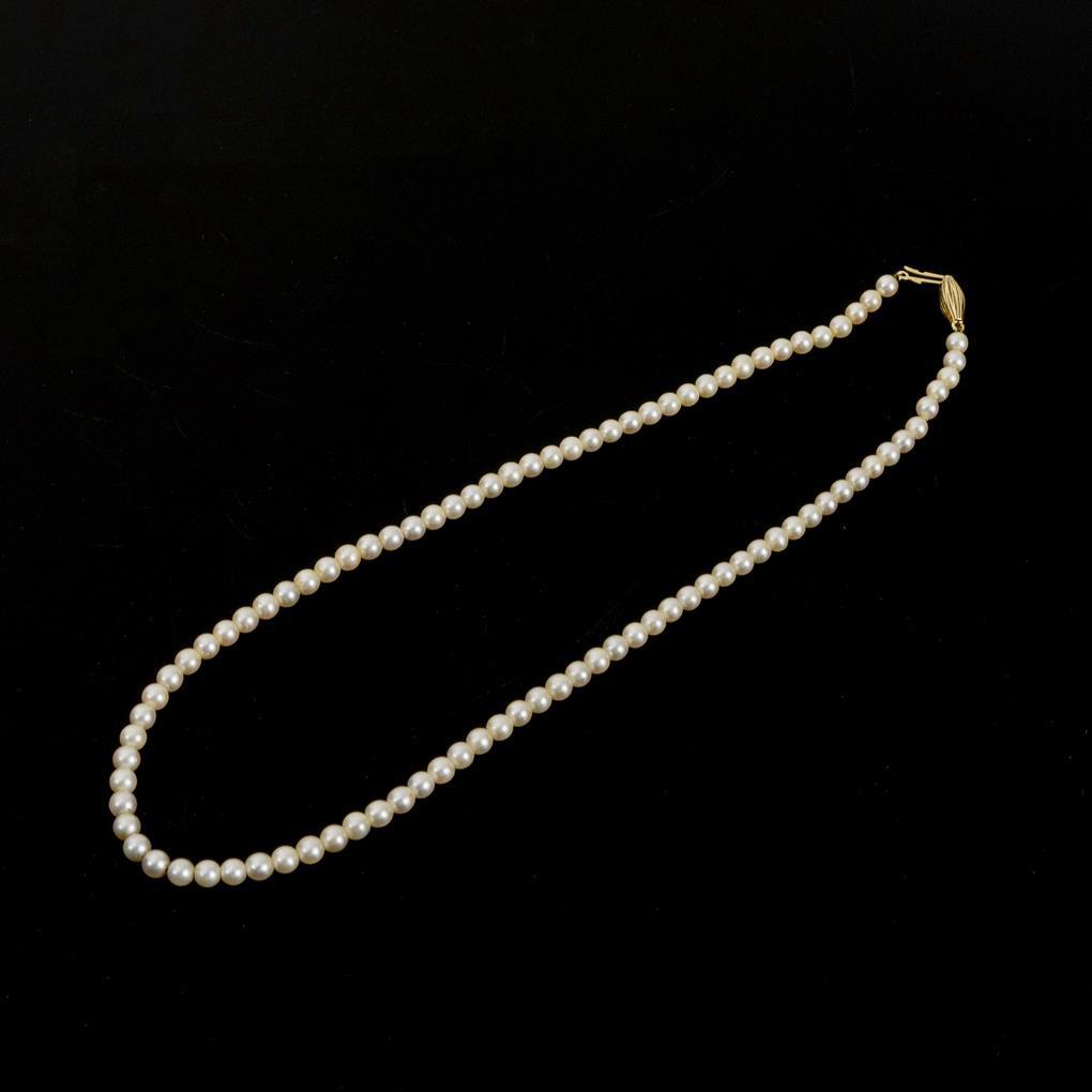 Gelbgold 585 gestempelt. Perlen Ø 3-4 mm. L 38 cm. 10,1 g.
